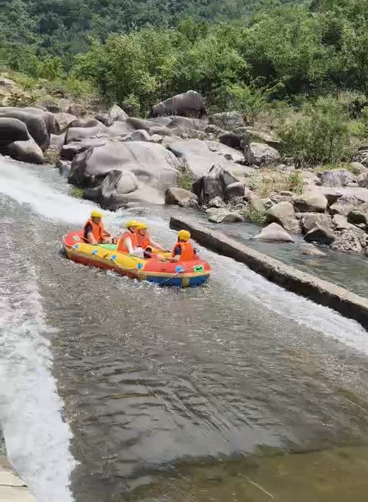 穿上救生衣,登上漂流艇,一場刺激又歡樂的冒險(xiǎn)正式開啟。隨著水流,漂流艇時(shí)而急速前行,濺起高高的水花,引得大家陣陣尖叫;時(shí)而又在平靜的水面緩緩漂蕩,讓大家有機(jī)會(huì)欣賞兩岸的美景,感受大自然的寧靜與美好。