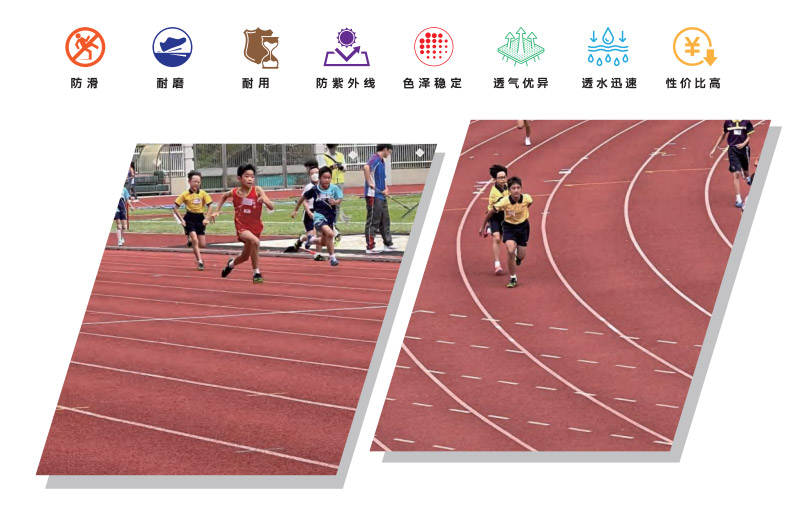 1、適用于各類學(xué)校、院校的運(yùn)動(dòng)場(chǎng)、訓(xùn)練場(chǎng),施工簡(jiǎn)易,施工周期短,尤其適用于降雨量比較大的地區(qū)。