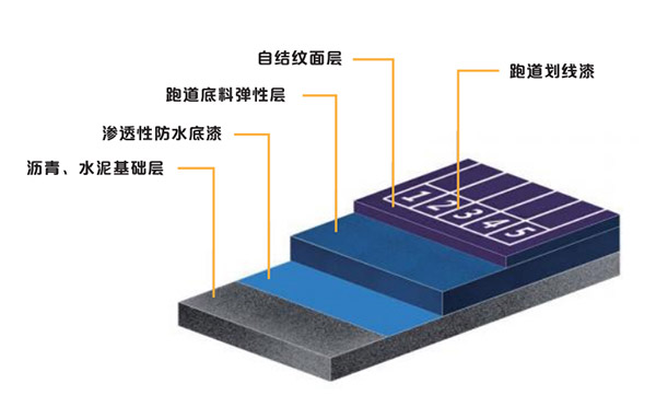 2、此 類型跑道面層使用專業(yè)自結紋面漆噴涂,不添加EPDM顆粒,使面漆的耐老化、耐磨度大大提高。